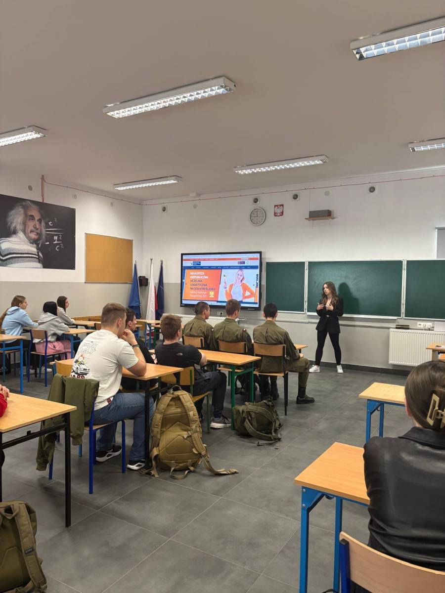 Podczas spotkania z klasami logistycznymi podzieliła się swoimi doświadczeniami ze studiów, praktyk i pracy zawodowej ![]()