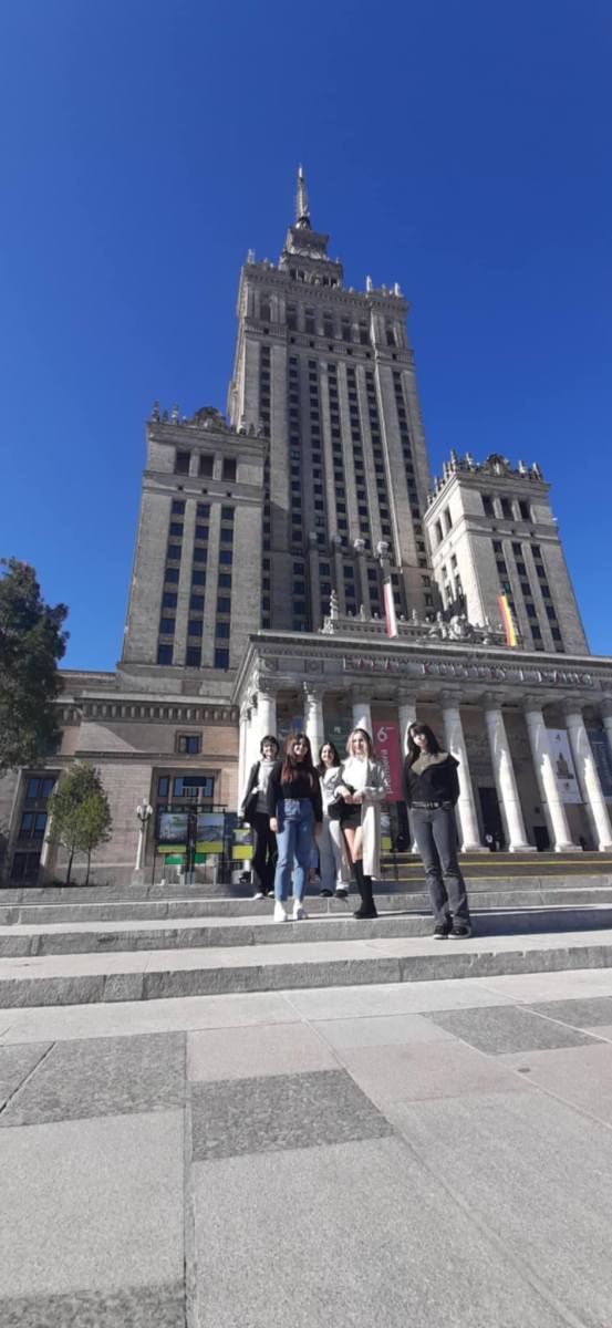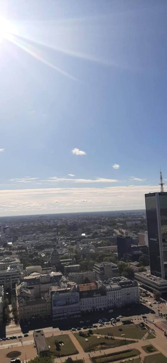 Młodzież udała się również na taras widokowy Pałacu Kultury i Nauki. Z wysokości ponad 100 metrów uczniowie mogli podziwiać panoramę Warszawy, rozpoznając najważniejsze budynki, mosty i parki. Pogoda dopisała, więc widoki były naprawdę imponujące!